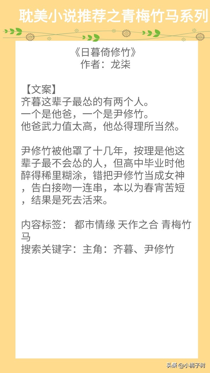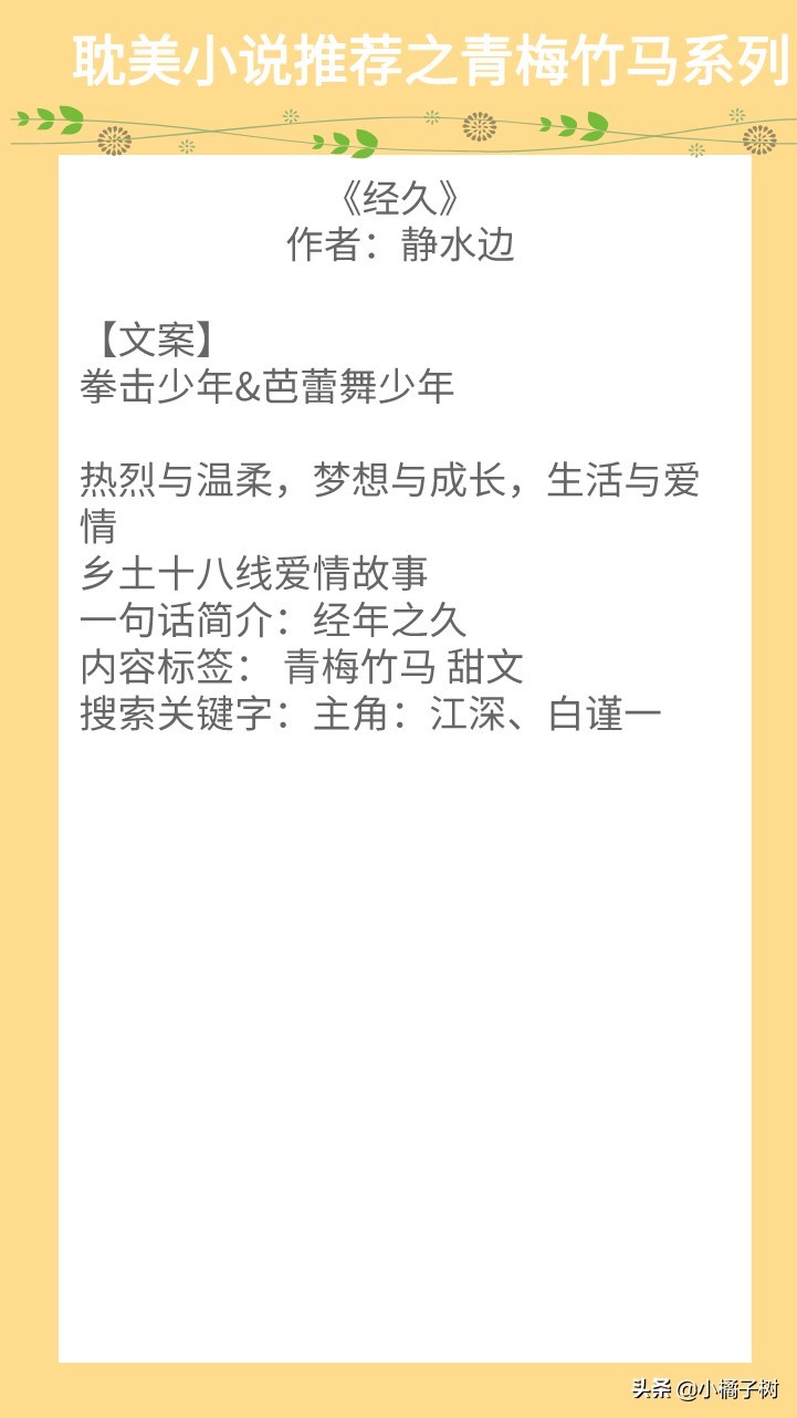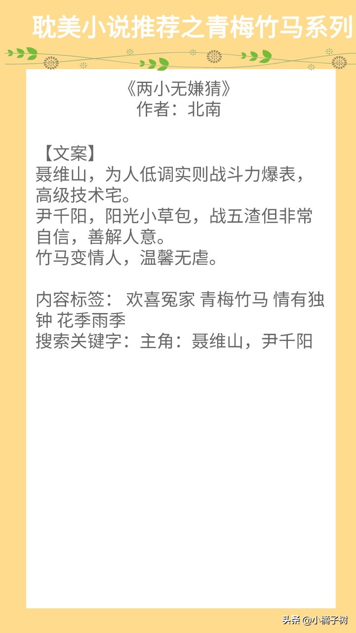 青梅竹马成佳偶,两小无猜到白头。我想大多数人都向往这样的爱情,今天推荐5本青梅竹马系列的纯爱文,我陪你长大,也伴你到白头,超级温馨,希望大家喜欢~
