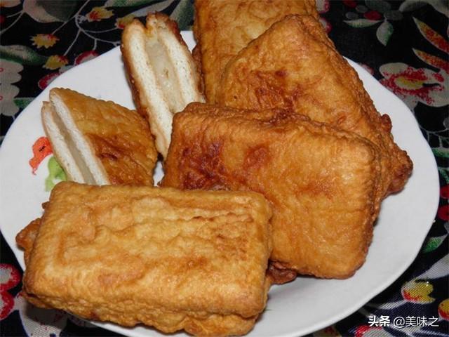 6、盘子里的水擦干,炸好的夹心饼装在里面。