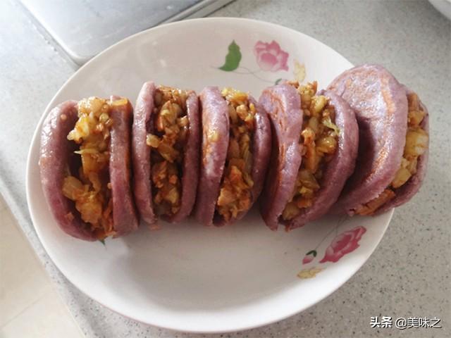 红烧肉100g、紫甘蓝50g、小麦面粉200g、卷心菜100g、油适量酵母3g。