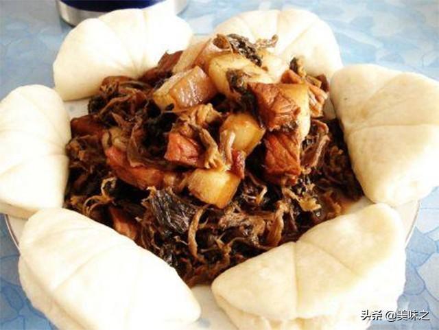 11、将梅菜烧肉盛盘,再在旁边码上荷叶饼即可。