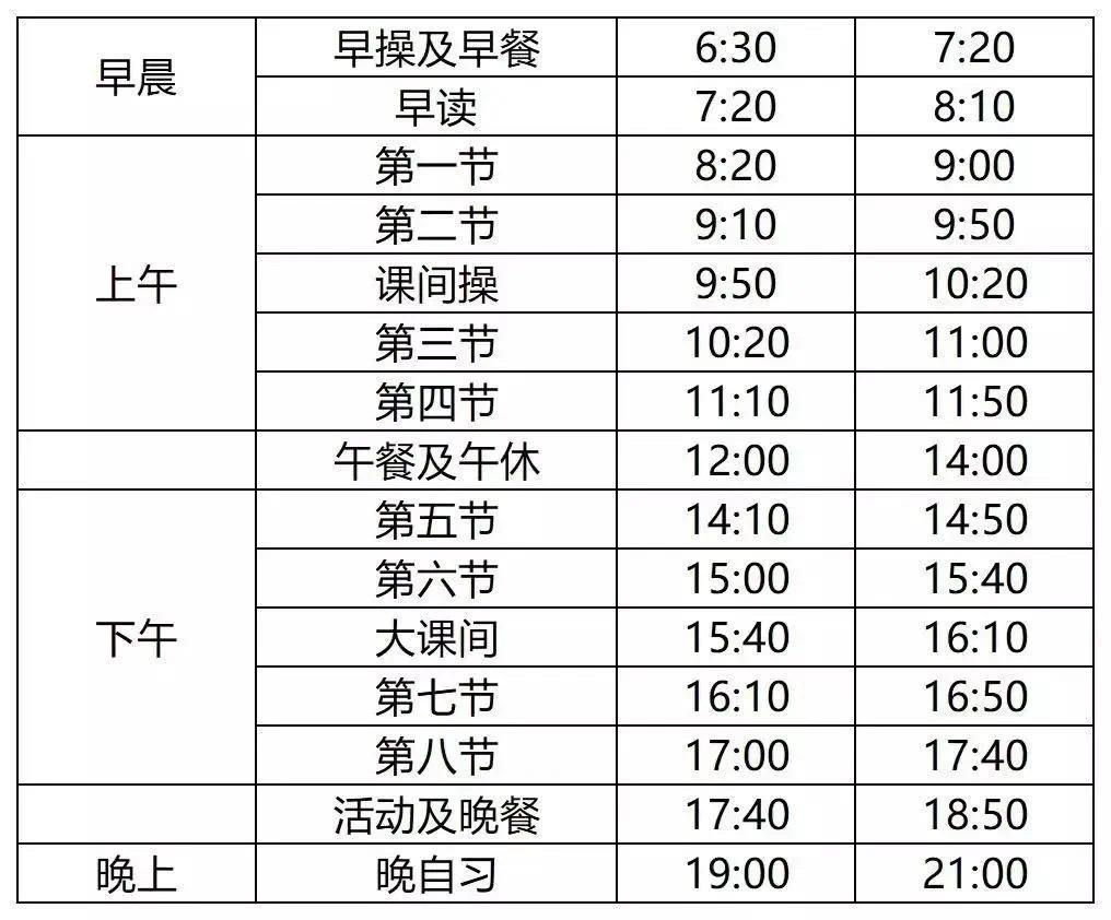 学生在校时间安排