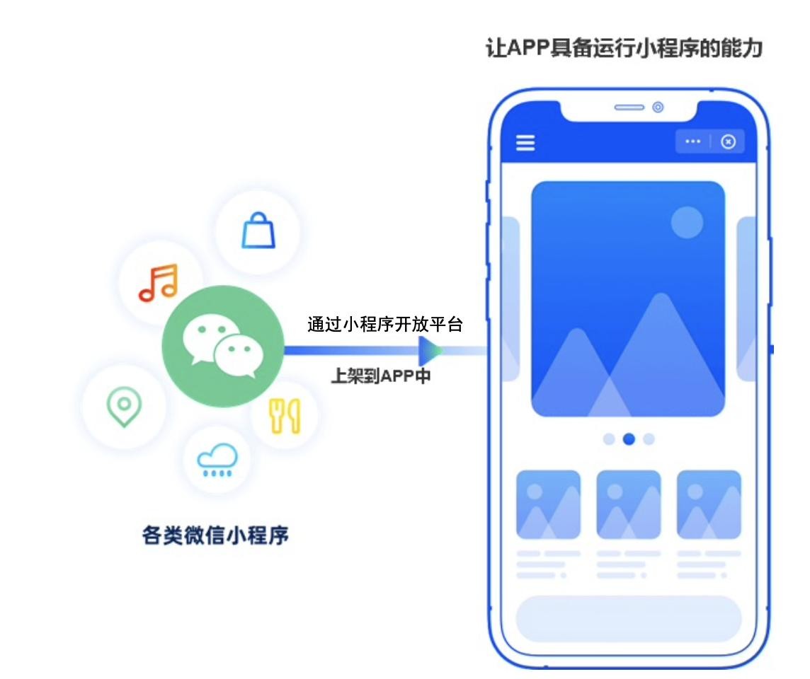这里我们可以借助小程序容器技术实现超级App的打造,借用小程序容器技术可以将企业或第三方已开发完成的成熟小程序直接搬到自有的App中进行运行。目前市面上也有相关技术厂商提供这样的技术,他们将小程序运行沙箱封装成一个SDK,只需要在你的 App 里面集成 SDK,就能加载运行现有的小程序了。除了 SDK,它们还提供一个后台管理系统,统一管理小程序的上架和下架,以及收集和分析小程序数据。