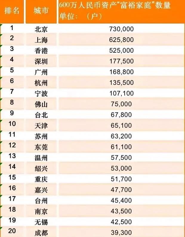 首先,我们不得不提的是香港。尽管在GDP总量上,香港与深圳存在一定的差距,但论及富裕程度,香港却远超深圳。这主要得益于香港的金融、贸易、服务业等领域的发达,吸引了大量的资本流入,使得这里的家庭资产普遍较高。据统计,2023年香港的600万人民币资产“富裕家庭”数量高达525000户,位列前茅。这也意味着在香港,相对较多的家庭拥有较高的财富积累和生活水平。