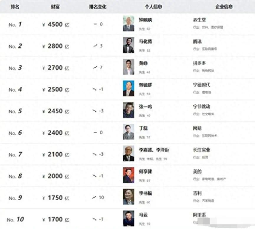 中国富豪榜洗牌:马云几乎查无此人,李嘉诚排第七,首富没人认识