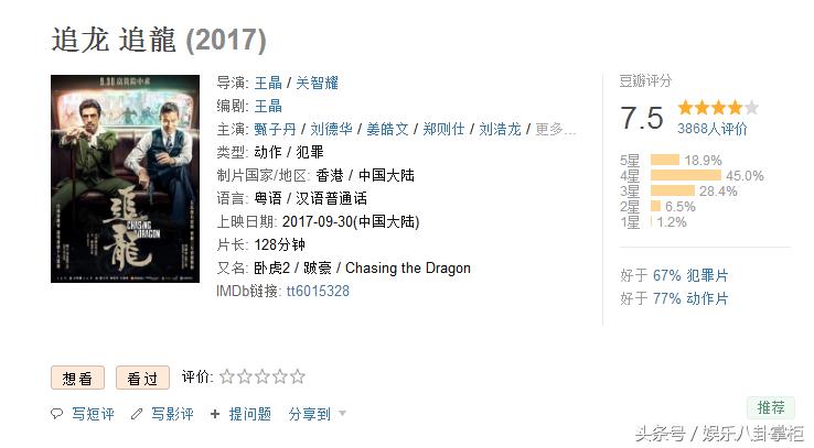 豆瓣评分7.5!刘德华甄子丹的《追龙》好看得不像“王晶之作”