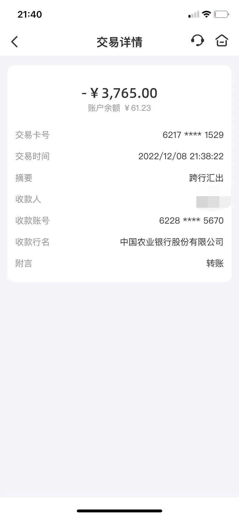 徐先生与对方取得联系,对方称要将微信账号解封,需先将自己手机银行里的钱转到指定的账户进行验证,账号解封后再如数退还。在对方的诱骗下,徐先生将手机银行里的3765元钱转至对方账户,后对方立即将徐先生拉黑,徐先生这才意识到被骗。
