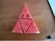 ❸ 再将西瓜切成大小均匀的4等份。