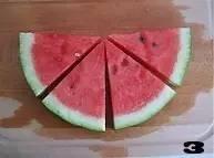 ❸ 再将西瓜切成大小均匀的6—8等份。
