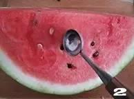 ❷ 最好选半个西瓜取球,这样西瓜汁不易流出。