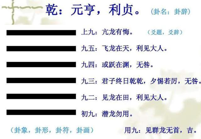 “初”是由最下方开始,乾卦的第一爻。“九”是阳爻。