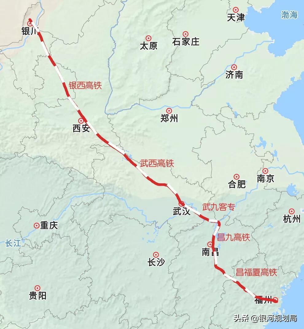 银川至福州高铁通道是国家级高铁通道,连接西北地区、华中地区、华东地区等3个大区域,经过的大中城市非常多,是一条具有战略意义的高铁大通道。银福高铁通道由多条高铁共同组成,目前仅仅只剩下3个路段尚未开工建设。