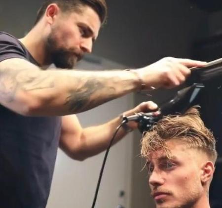 我看到理发师会用一个梳子,略微的给我挑一下打结的头发!将头发弄顺!于是我回去之后也买了一个那样子的梳子!然后我每天都是依葫芦画瓢模仿美发师的手法!我一般头发是偏向左侧!于是吹的时候会先将头发梳向右侧,然后从左往右,少部分头发少部分头发那样子变向,用一个类似于狼牙棒的梳子讲头发弯曲!讲偏向右侧的最后一缕头发,用梳子卷向左侧的时候,也就大功告成了!
