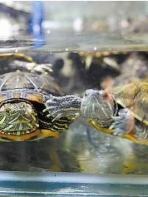 家养的乌龟主要以营养配比均衡的人工饲料为主粮,辅粮可以喂食新鲜的生肉、虾、活的鱼等食物,有时可以少量喂一些谷物或由谷物制成的花生饼、豆饼等熟食。可以适当增加乌龟的营养,平时植物可以吃面包虫、蚯蚓等蛋白质食物含量高的食物,乌龟可以吃什么蔬菜水果,但一次不能吃得过多。