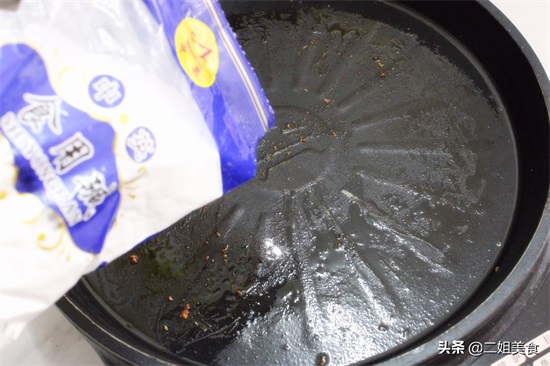 2、这时候我们往电饼铛里面加上适量的食用碱,用食用碱能起到很好的去污效果,这样的效果不是洗洁精能达到的。