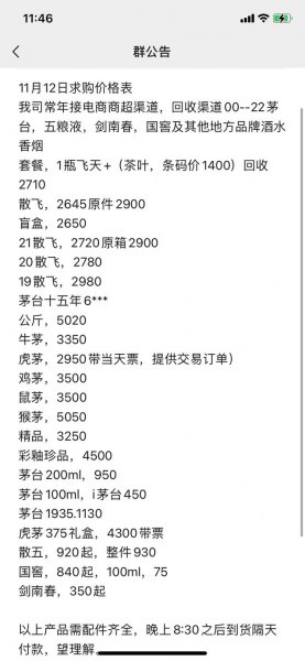 这个群是那个收货的老板拉我进的,我看这些天虎茅的价格都是2950,没有变化。