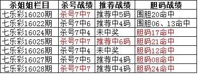 3月12日,今天是植树节!唯彩会数字彩专家组传来一封喜报!3月11日晚,七乐彩第16028期开奖后,七乐彩独家原创栏目杀姐姐推荐胆码5期连中!5期连中!5期连中!同时上期杀号7中7,推荐中4码,胆码命中对彩民进行胆拖投注可大大减少投注成本,杀号也为彩民投注排除了“障碍”,下面我们一起来回顾七乐彩杀姐姐栏目近期的战绩。