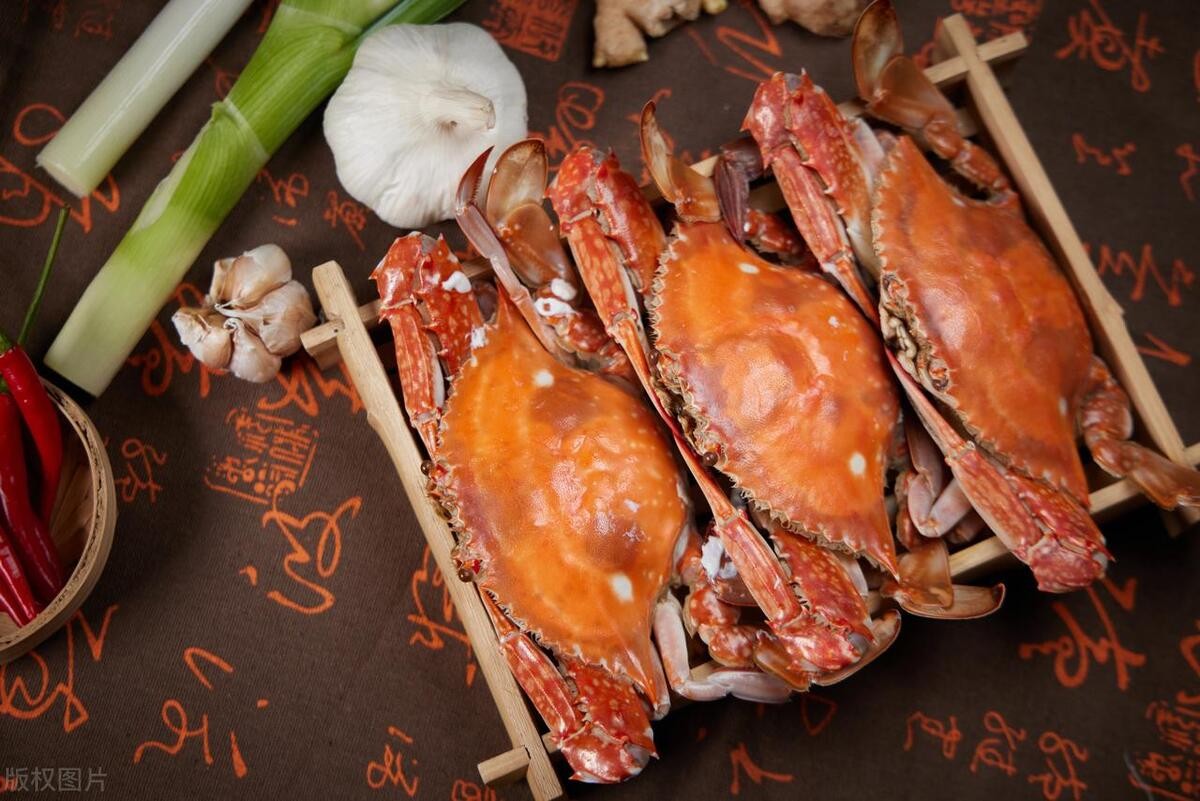 3.莱州梭子蟹:烟台著名海鲜,梭子蟹蟹壳坚硬,蟹脚细长,蟹身扁宽,蟹爪肥大,肉质鲜美,蟹黄丰满。蟹肉饱满,口感鲜嫩,味道鲜美,被誉为“蟹中珍品”。