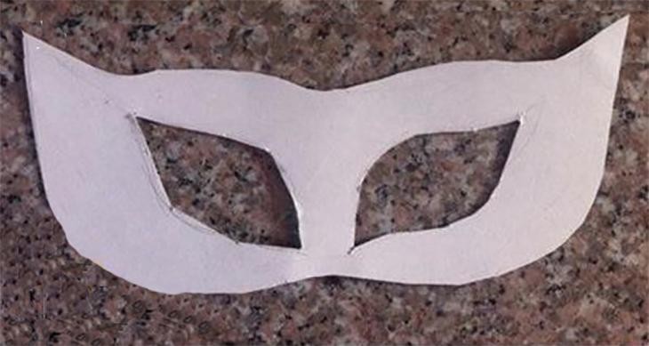 按照孩子脸蛋大小,在纸盒拆出来的卡纸上画出面具基本形状,并剪下来。