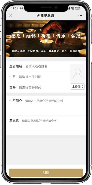第三步,把故人的信息录入,创建一个小烛光的纪念馆