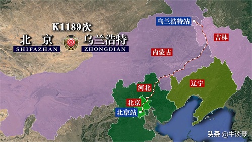 K1189次列车运行线路图:北京开往内蒙古乌兰浩特,全程1180公里