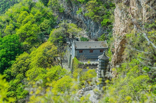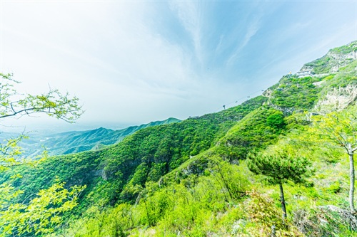 千灵山主峰海拔699米,是北京西南第一崇山,也有着最大的石窟洞群,一尊金佛屹立在巍峨的山巅,金佛脚下全长1869米的北京第一长索道沿着山势而建。