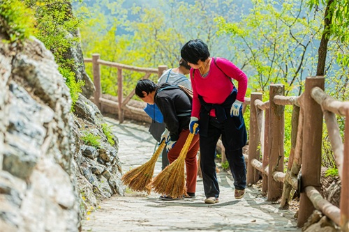 为了迎接五一长假的到来,工作人员对山体步道进行全面清理。在这里,记者也号召游人:假期文明出行,带走身边的垃圾。
