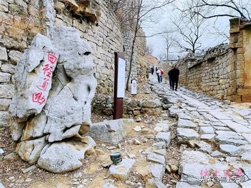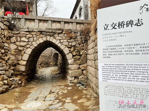 直入高高的村门楼,左手标注饮马池,脚下便是那条著名的“双轨古道”,回转身来可以蹬门楼远眺,古朴浓郁的风格宛如穿越到600多年前那个古老的聚落。