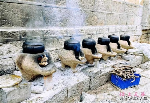 它的独特在于,既是景区又是村落住家。游人穿梭在蜿蜒盘曲的双轨古道上,近看成景远眺处处炊烟罩。高高的石级台上,大妈早早在屋前摆上自家的炉灶家什,现做现卖擀面烙饼,颇有浓浓的归乡亲近自然之感。