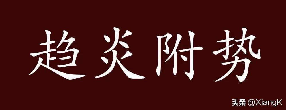 【成语释义】:奉承、依附有权有势的人。(趋:奔走;炎:热,比喻权势;附:迎合、依附)