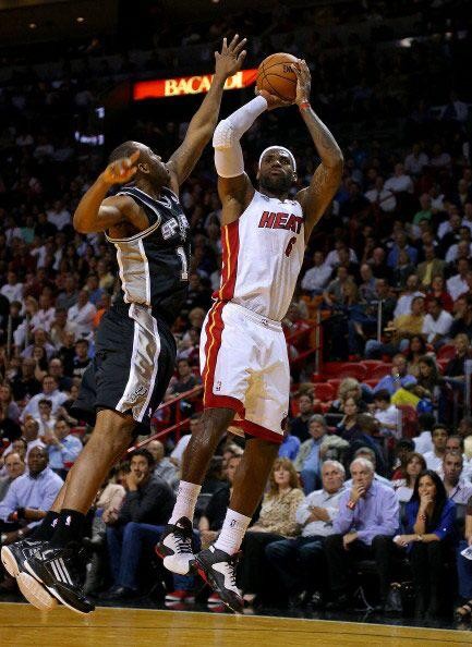 勒布朗再次调整射球方式,是在热总决赛输给小牛之后。因为小牛卡莱尔教练的变种23联防,吃准了勒布朗无球投射不好、不会背身的缺陷,那年总决赛勒布朗打的十分吃力。他下定决心练出乔科一般的背身中投,并将出手站姿练成侧对篮筐式,自此勒布朗的投篮终于可以称得上一大杀手锏。在2013年总决赛中,勒布朗最终战胜了投篮方面的心魔,击溃了波波维奇的“退一步半放投”策略。