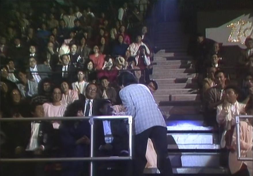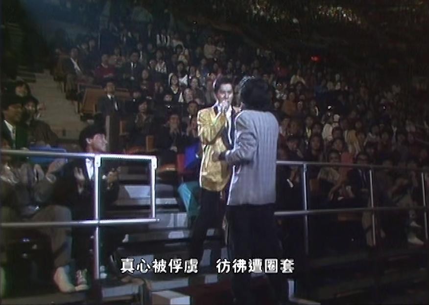 ,前面是吕方,旁边是梅艳芳,梅姐。其实在这里传有个话题,说罗文和许冠杰不敢接,但我却恰恰相反,因为这几人也是同辈份了,静静地也享受音乐即可,未来是留给其它年轻的接班人。更是一种传承的展现。