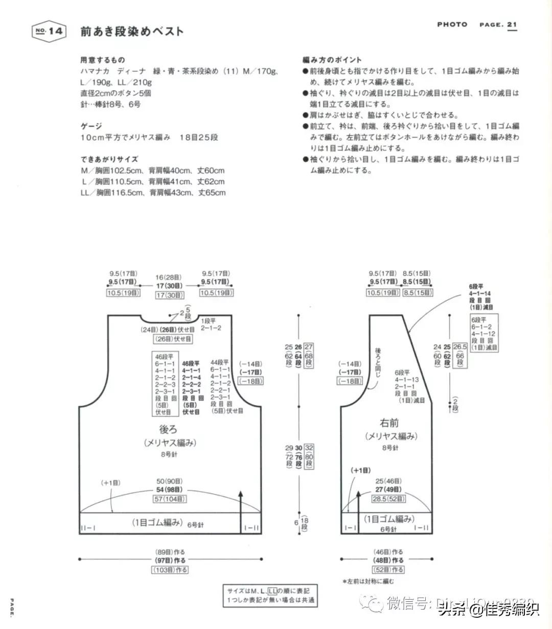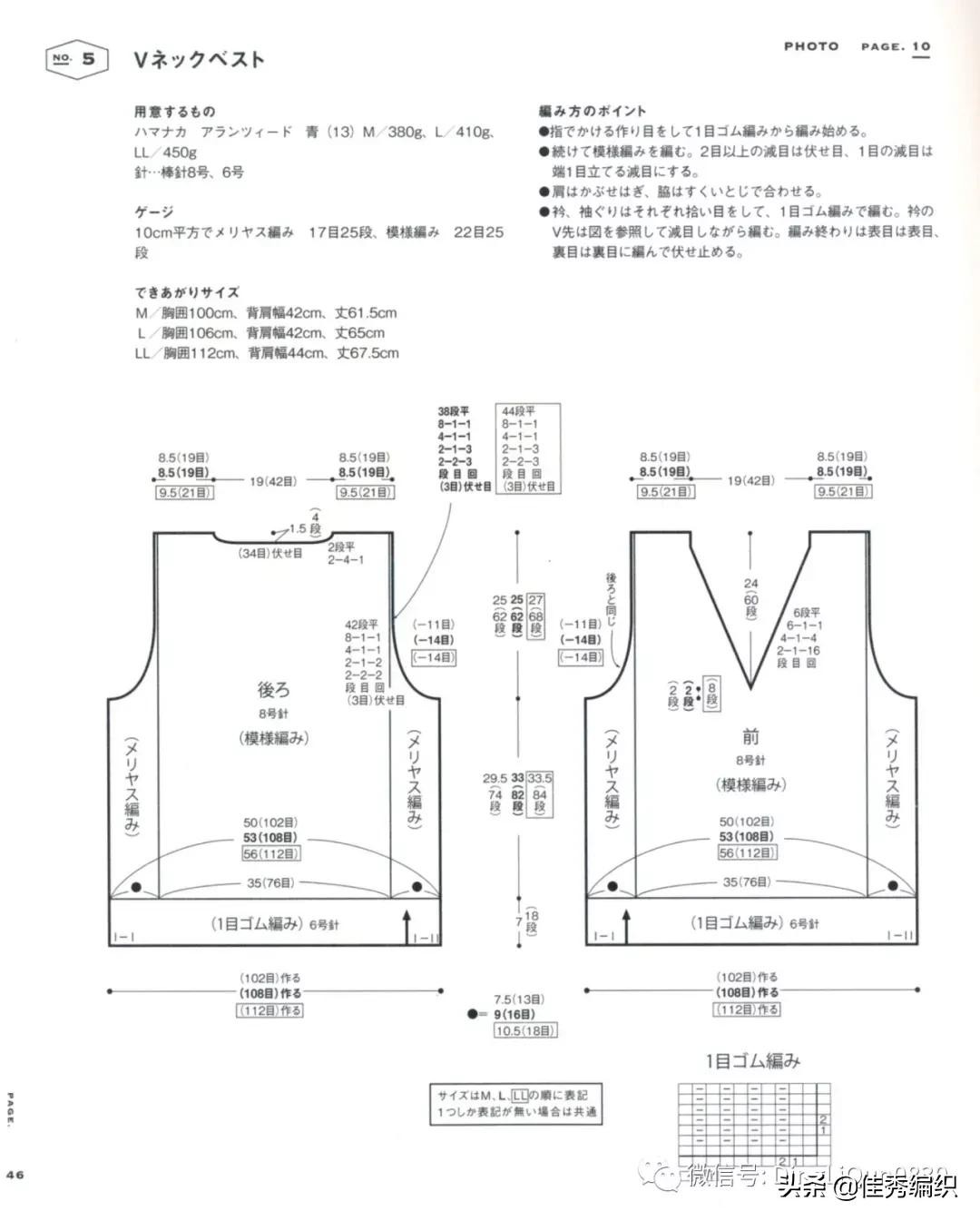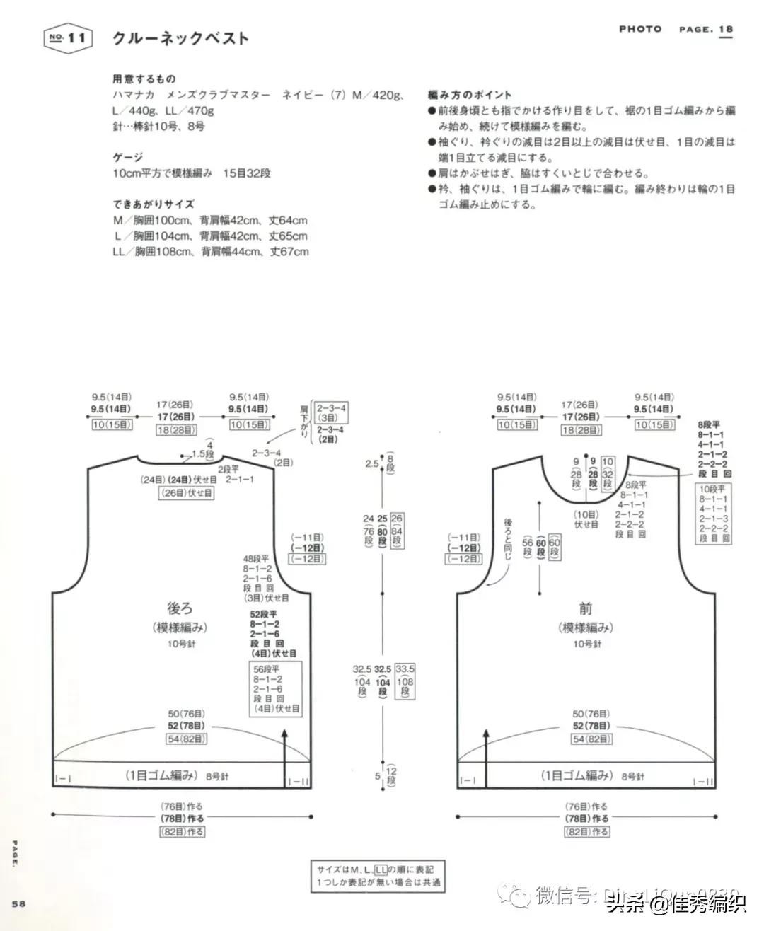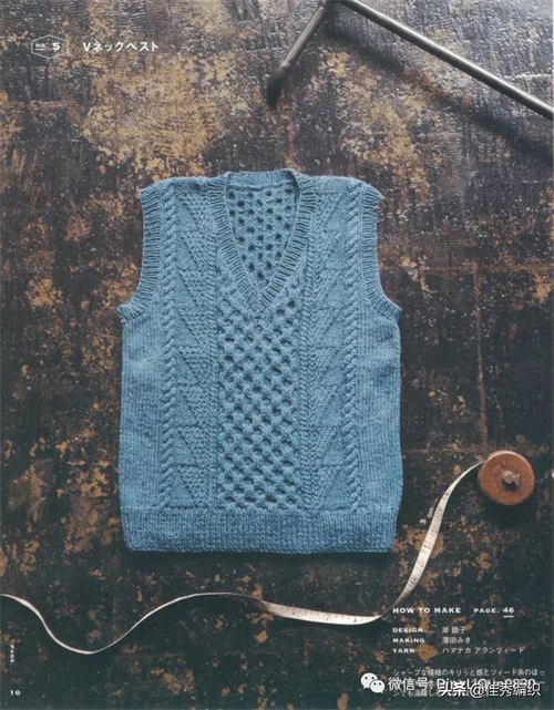 男士休闲毛衣背心马甲 棒针编织图解 6款