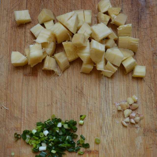 原料:木薯、蒜子、香葱、盐、油、酱油。