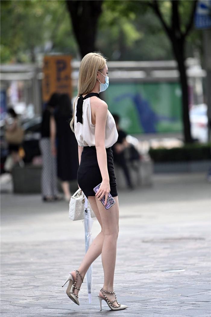 到了夏季,要如何搭配,不少人都会有自己的想法,也会按照自己的风格来穿搭,选择一些精致的服装,还有经典的高跟鞋衬托,让自己看起来更加精致一些,夏季可以挑选的高跟鞋款式很多,这位美女选择白色尖头细跟铆钉凉鞋,10厘米的高度,衬托身材效果很好,也显腿长,搭配黑色的包臀裙,衬托身材曲线,一件白色的小衫,宽松的款式,衣襟掖在裙子里面,这样对比色搭配很好看。
