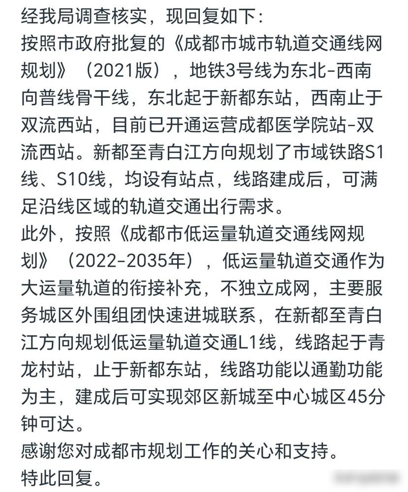 3号线向青白江区的延伸也是市民热切期盼的项目。青白江区拥有丰富的自然资源和旅游资源,但由于距离市中心较远,公共交通不够便利,限制了其经济发展潜力。3号线若能够顺利延伸至青白江区,将大大提高该区域与成都市中心的连接,为居民提供更多就业和生活便利。