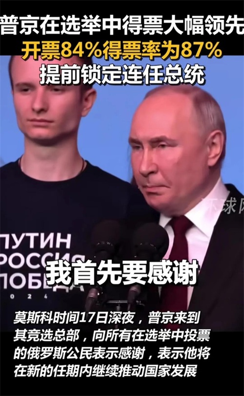 此次胜利是普京的又一次光荣征程,也意味着他将继续引领俄罗斯走向更加繁荣和稳定的未来。让我们共同期待普京在新任期内继续创造辉煌,为俄罗斯带来更多发展机遇!