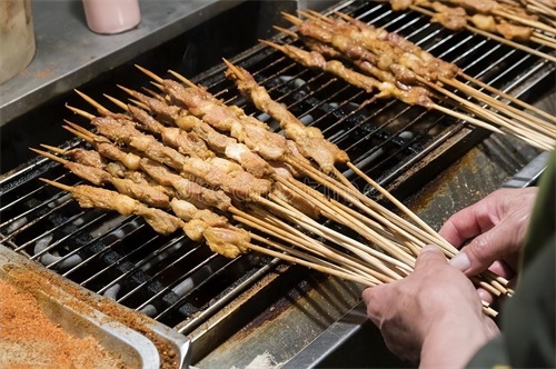 北京的羊肉串以其鲜嫩多汁、香气四溢而著称。选用优质的羊肉,经过精心腌制,再撒上辣椒粉、孜然粉等调料,烤制出的羊肉串香气扑鼻,令人垂涎。