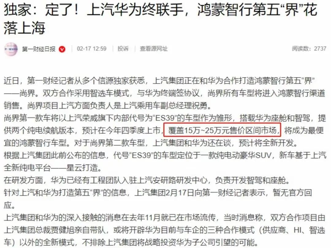 【最新消息:15万起!华为“最便宜智驾车”要来了?】