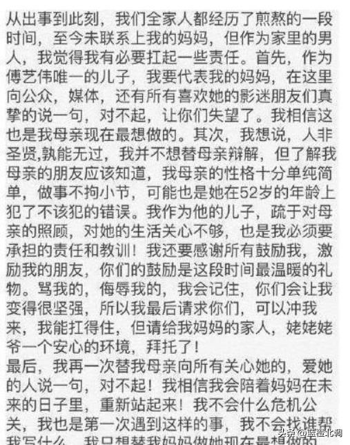 从90年代起到现在,傅艺伟就一直在走下坡路,虽然儿子替她扛了错误,但傅艺伟的人生只能自己来买单。