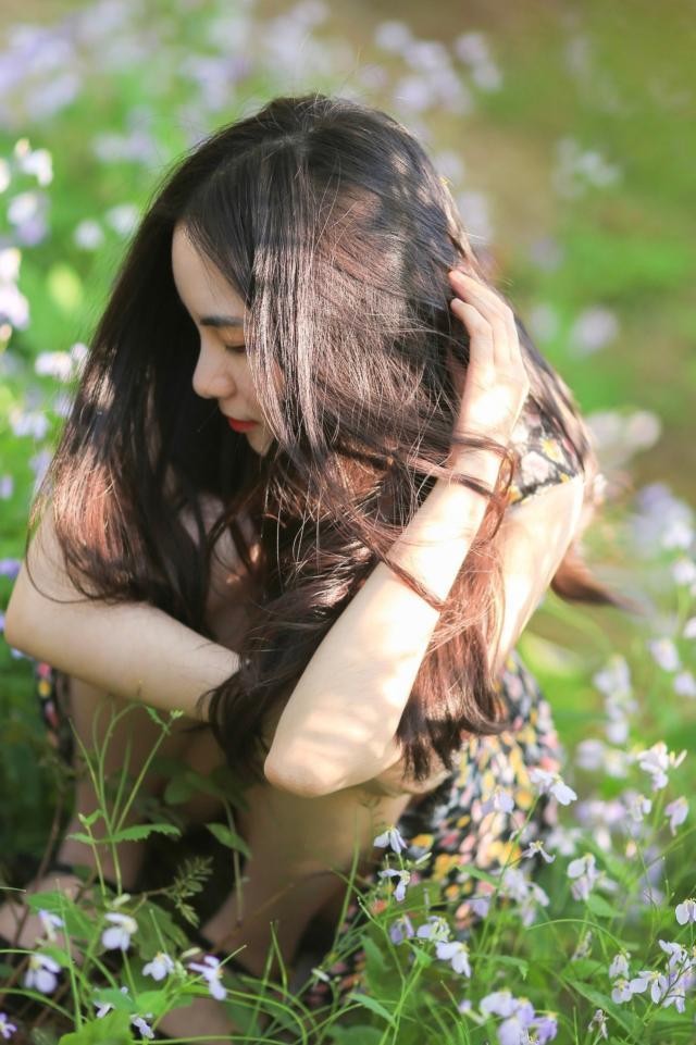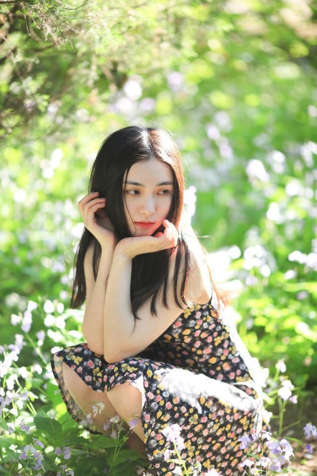 蹲拍的时候不看镜头,双手反托着像花儿一样,下巴轻放在手掌边边,不要用力捂到脸颊,眼睛看向别方,想象自己像花儿一样美美哒。