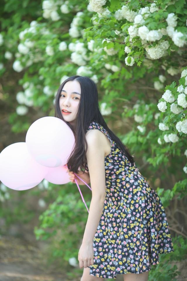 手拿着气球,半弯下腰拍的拍照姿势,可以露出纤细的手臂,微微一笑,特别青春有活力。如果手臂粗的女生,注意要撩散头发挡下手臂,这样会更好看。