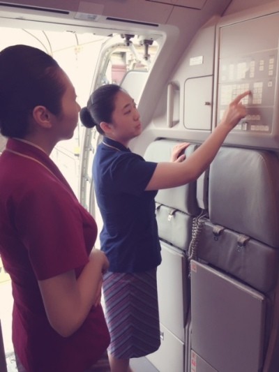随着机组车来到停机坪,上了飞机也不知道做什么,手足无措的站在前辈面前,想帮也帮不上忙…幸亏后舱的哥哥姐姐没有嫌弃我,还认真耐心的教我一上飞机应该怎么做和相关的注意事项。