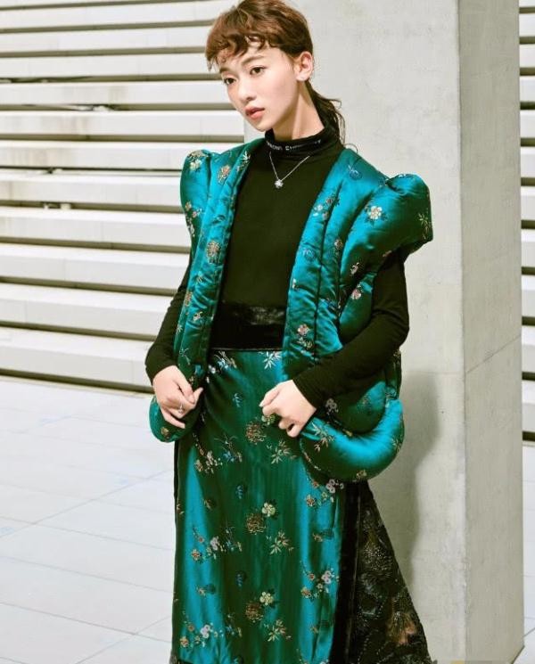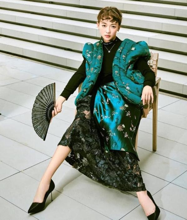 还有吴谨言曾拍摄的时尚大片,也是让人看不懂,她身穿一款黑色上衣,外搭一款绿色棉袄,搭配一款黑色半身裙,这造型真是一言难尽。小编想说这绿色印花棉袄是认真的吗?