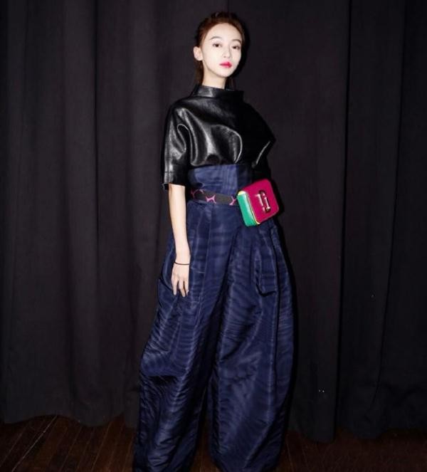 还有吴谨言在时装周的造型,也是让人一言难尽!黑色皮衣短袖搭配深蓝色超大灯笼裤,可吴谨言显然hold不住这身复古的造型,她娇小的身材穿起这身衣服将自己显得更像小矮人了。