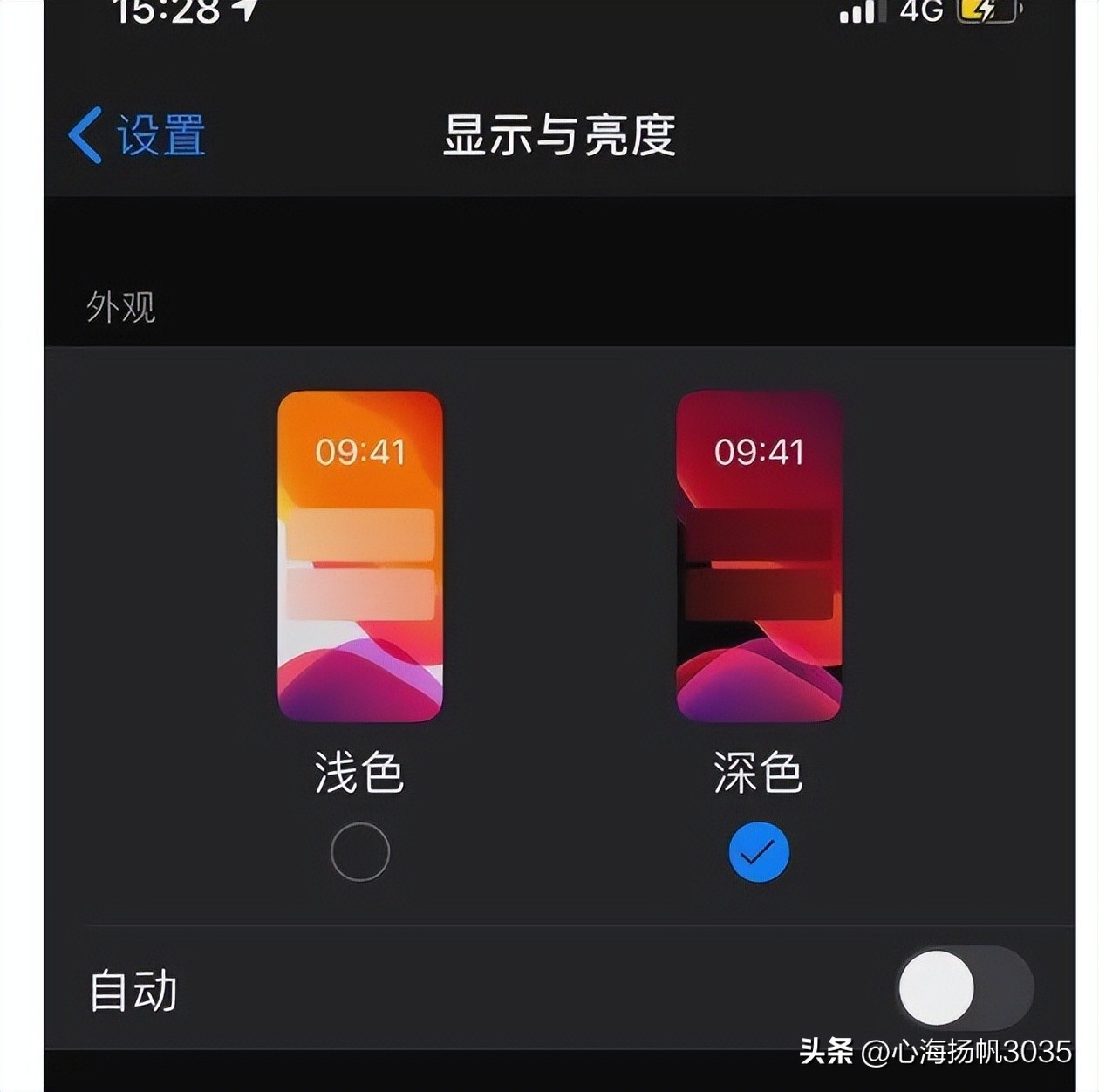 六、 深色模式设置,这个就因人而异,但是深色模式是非常省电的。大家根根据需要自行选择吧。