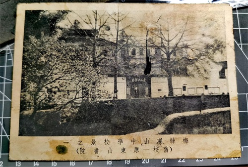 广东梅县东山中学创建于1913年,最初叫私立东山中学。1916年,更名为梅县东山中学校。1951年,改为广东省立学校。1953年,校名易为广东东山中学。纵观东山中学的百年历史,与梅州、广东乃至中国革命都有很深的渊源。东山中学走出了叶剑英、萧向荣,秦元邦等多位革命先辈,培养了叶选平、林若、曾宪梓、曾毅等一批杰出校友,是一所有着光荣革命传统和深厚历史文化底蕴的学校。而这期间,参加过南昌起义并在起义部队南下失败后只身到达香港的中共党员秦元邦,是叶剑英在梅县东山中学的学友。他到达香港后,贫病交加,生活无着。叶剑英邀他到家中暂住,并设法为他求医治病。秦元邦病愈后,叶剑英派人秘密将他送回广东梅县老家,继续参加革命斗争。我前几天刚刚在友人处抢到的一张的梅县东山中学校景珂罗版照片,系老革命,老教育家,梅县人秦元邦所藏照片册中的一张,大约在去年年初,我朋友在群里陆续上传一批民革华南分部的老资料,老档案,十分精彩,内容丰富,包罗万象。这其中,就有秦老的一批资料档案,我跟了一年有余,也抢到了几件,这张照片就是最新所得。在秦老所审阅的自传履历表中,也屡次出现“东山中学”,可见这所他曾经学习,工作,战斗过的学校在其心里的地位有多重要。档案和照片相互印证,互为补充,为我收藏和发掘秦老的历史往事,又多了一份力证!