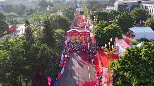 在花瓣中起跑:云南弥勒女子半程马拉松开赛