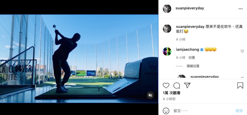 徐静蕾7日在Instagram更新近况,用吐槽的语气写下「原来不是在吹牛,还真能打」,仔细一看才发现,她晒出一段男友黄立行在高尔夫球练习场打球的影片,罕见公开放闪的举动,火速吸引了大批网友的目光,有粉丝留言夸赞她「找男人的眼光很厉害」,她也害羞回应「那我就不客气(收下称赞)了」。