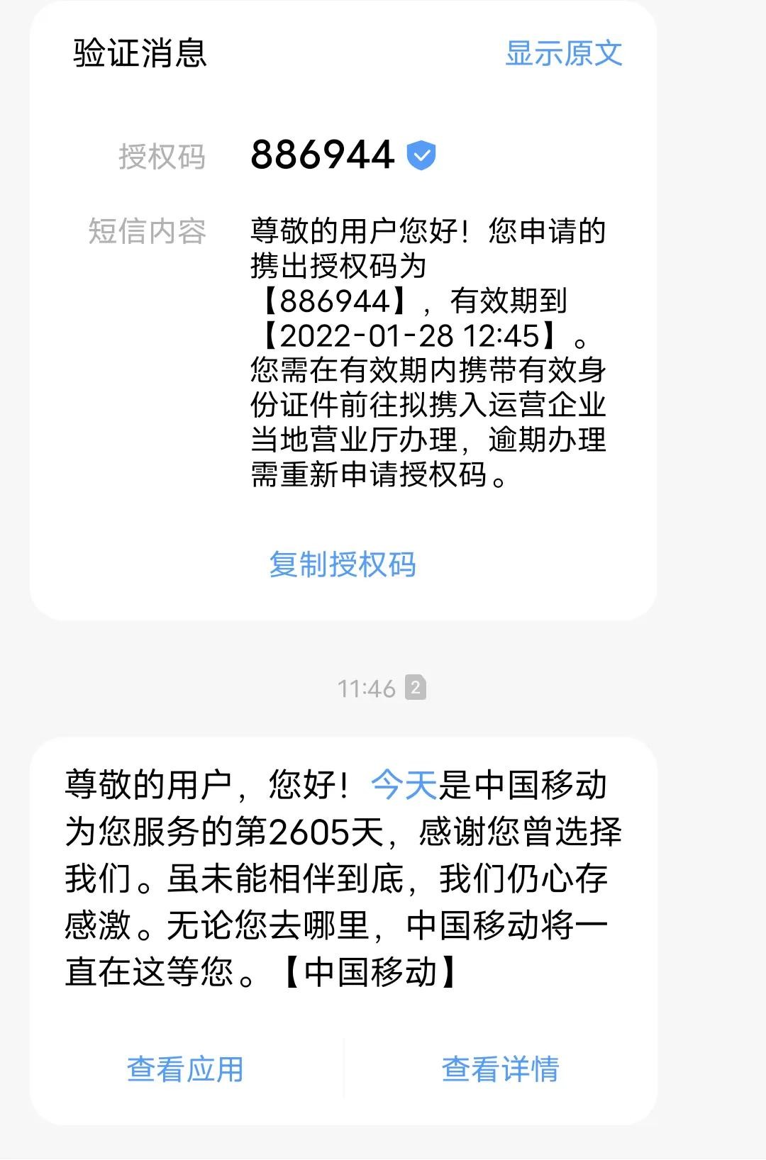 我的卡需要先到移动营业厅办理主副分离才能转网,跟业务员说要办理携号转网,没有问原因没有挽留,直接帮忙办理主副卡分离,副卡开了个8块套餐下月生效,还提醒要在月底内转出,要不然副卡下个月要收月租,移动办理不到10分钟完成,用了7年的移动卡就这样说拜拜ノBye~。