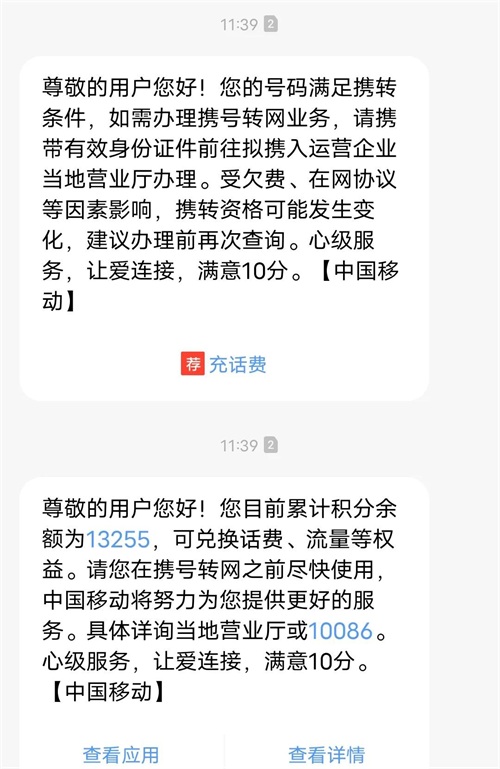 移动携号转网电信体验